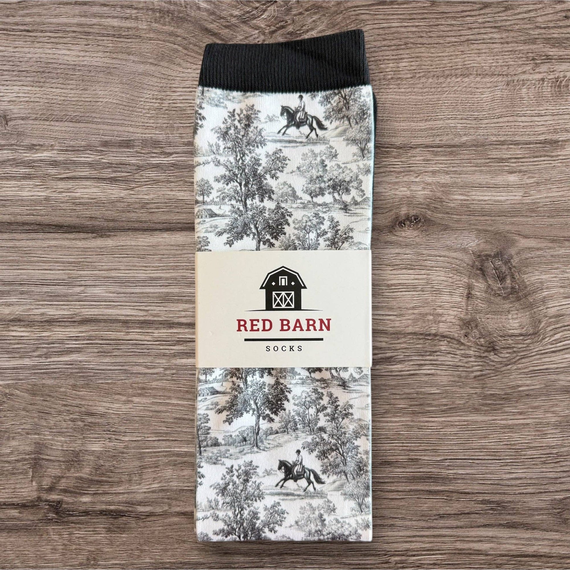 Step into timeless elegance with our Countryside Canter socks. Featuring a classic black and white toile design, these socks bring refined equestrian style to your everyday wear. Crafted with comfort and durability in mind, these are perfect for slipping under tall boots at the barn or adding a touch of sophistication to your daily barn chores.