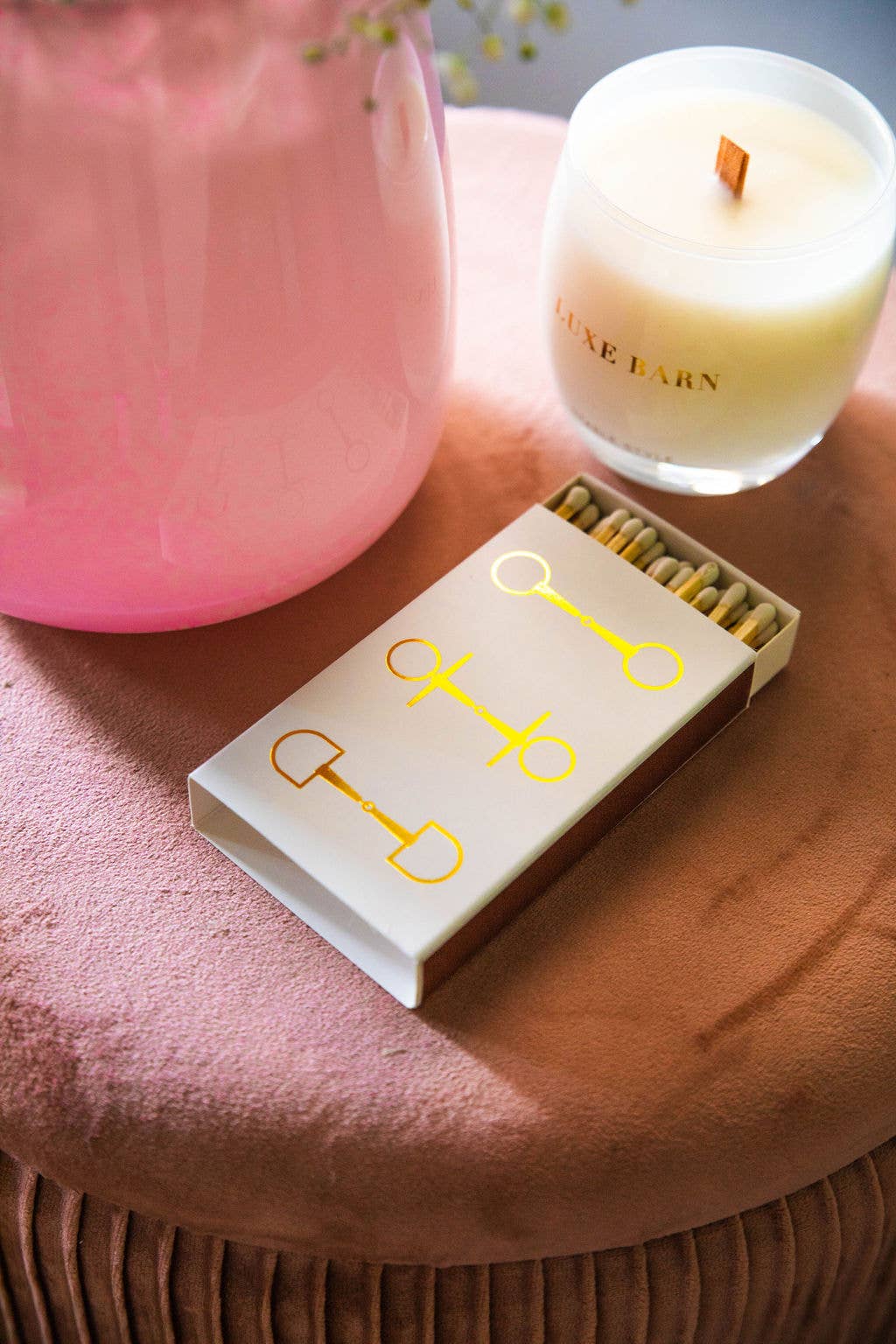 The snaffle bit design adds a fun equestrian element to these oversized match boxes.